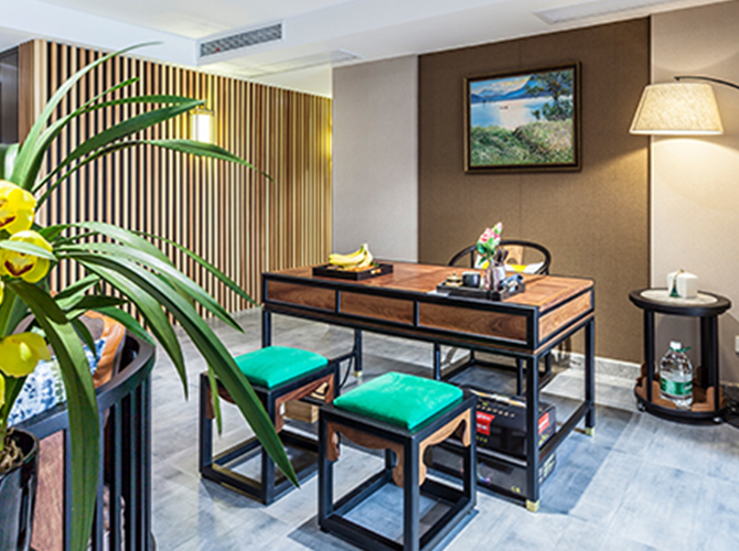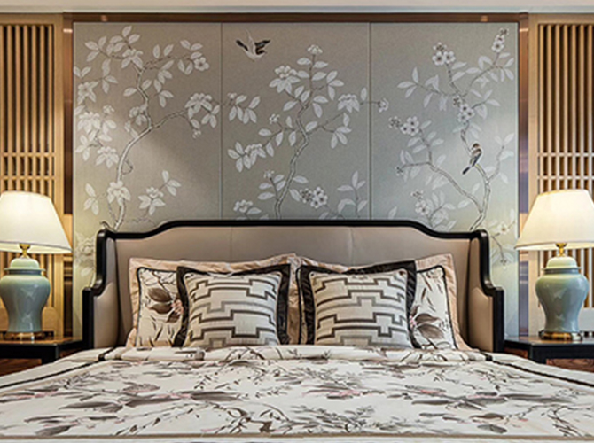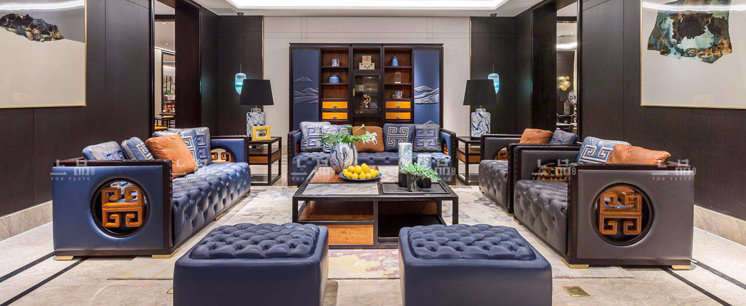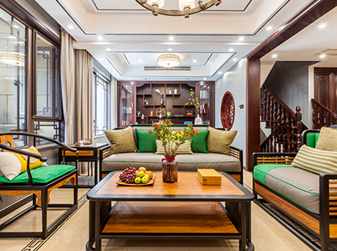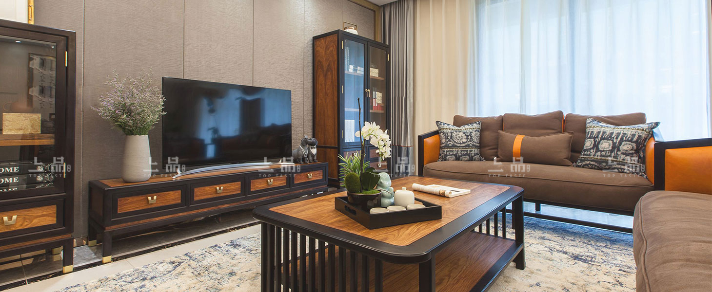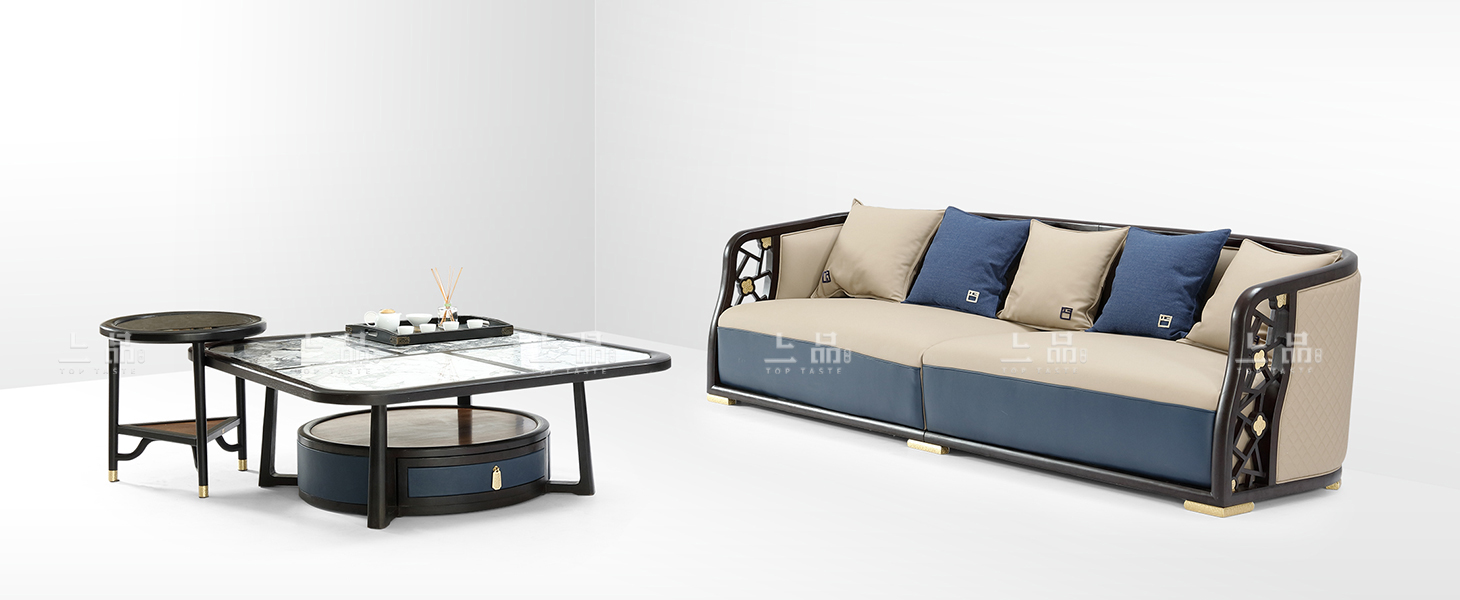 摒弃繁复花哨的装饰,以简练而满实的造型彰显大气与雍容。黑酸枝框架勾勒出江南园林般简约的立面和细腻的线条,棉麻布软包带来大自然的清新气息,浓烈的色彩演绎着满园的姹紫嫣红。